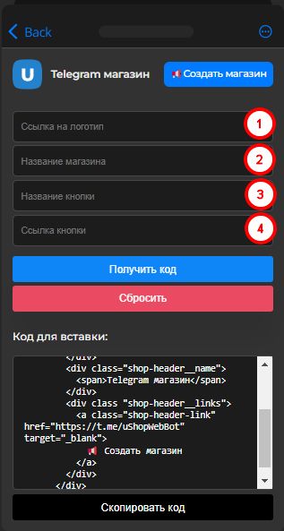 После того как вы заполнили все поля нажмите Получить код. Полученный код переносим в открытый ранее раздел Дизайн, вместо автоматически сгенерированного кода. После нажатия на Сохранить, шапка обновится и внесенные изменения применятся.