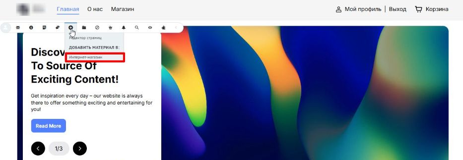 Залогиньтесь на сайт, который вы создали при создании бота, нажмите в панели управления на иконку + и Интернет-магазин.