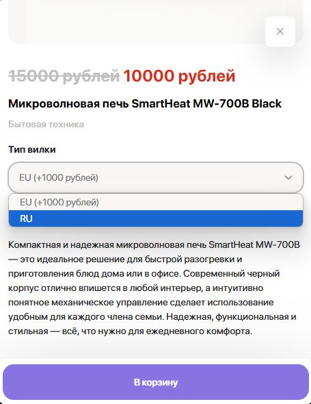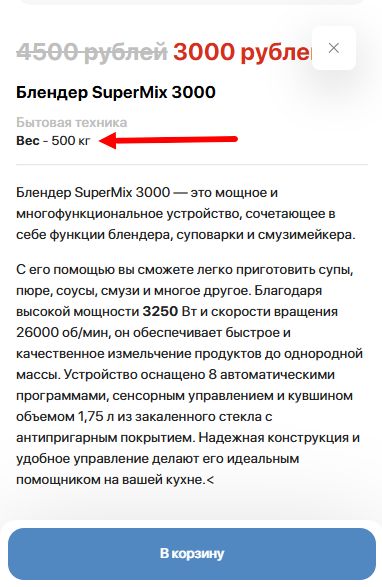 Иногда вес опциональной позиции может отличаться от основного товара, в варианте товара можно указать индивидуальное для него значение.