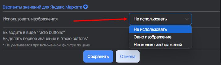 Параметры YML-выгрузки - требуется выбрать необходимые вам параметры лишь в том случае, если вы планируете отправлять товары в формате YML куда-то вовне, к примеру Яндекс-маркет.