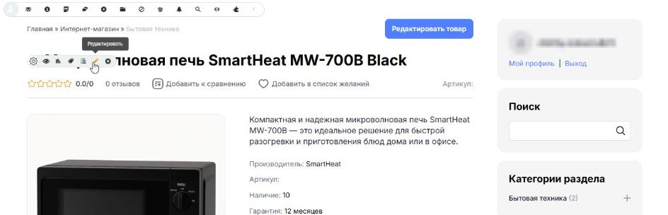 После добавления товара вы можете ознакомиться с ним и если вам что-либо не понравится отредактировать его, нажав в панели администратора вот на эту кнопку.