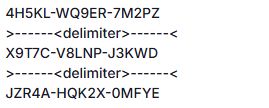 Товар-электронный код - коды, любые: коды активации игр в Steam, пополнение игровых кошельков, отправка одноразовых ссылок. В отличии от товара файла имеет остаток и коды требуется разделять при помощи разделителя >------<delimiter>------<, каждый код с новой строки. Пример.
