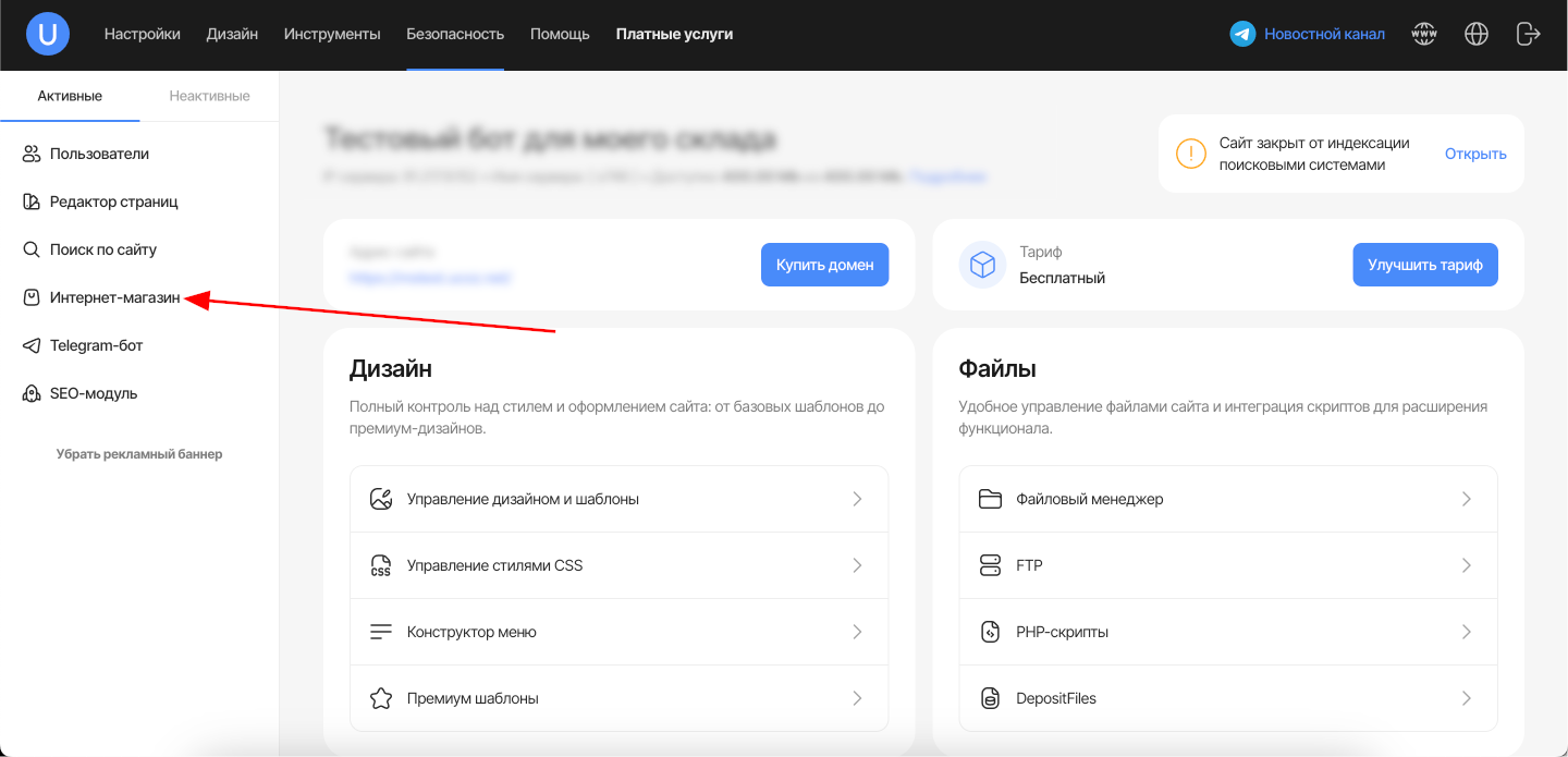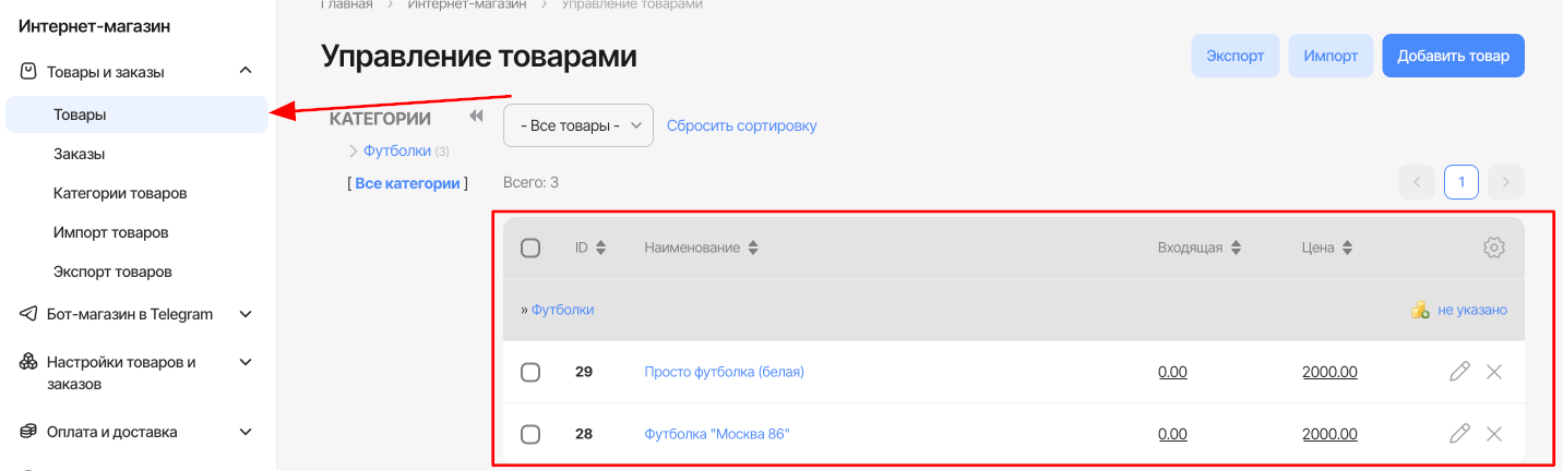 Проверьте, что товары корректно выгрузились, в разделе с товарами, в ПУ uCoz.