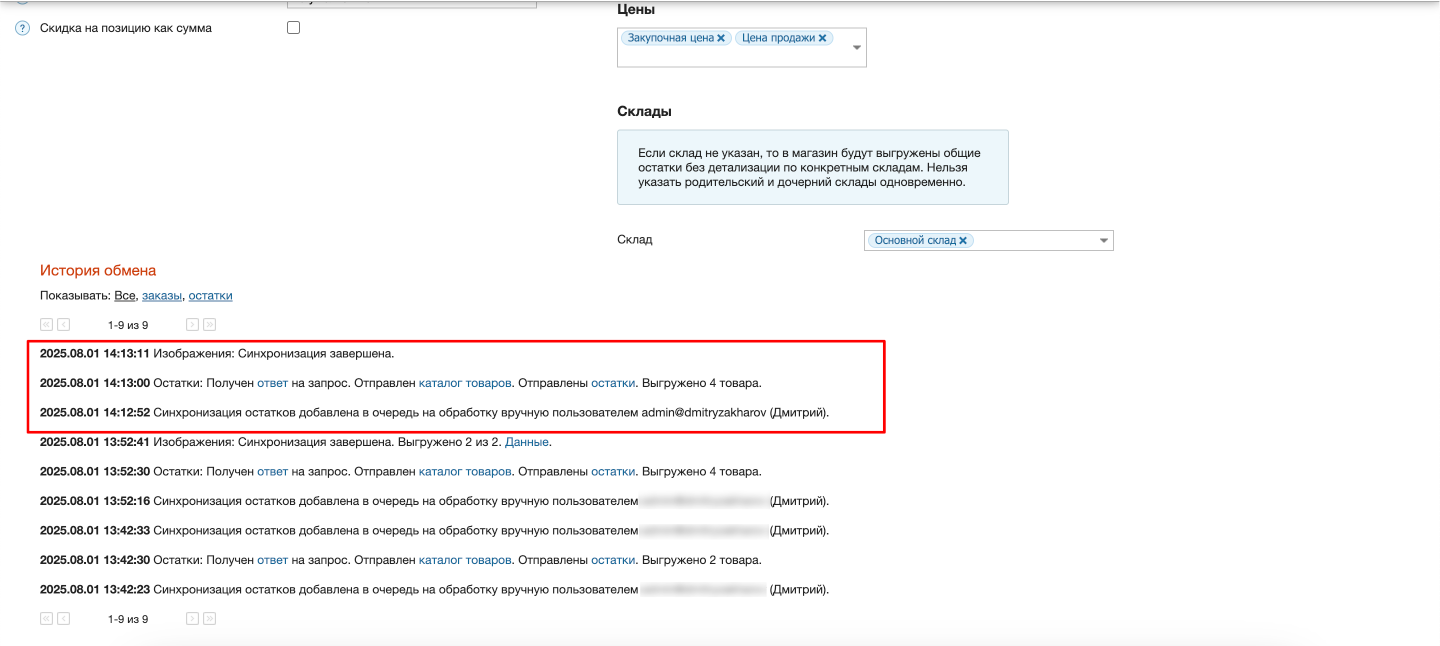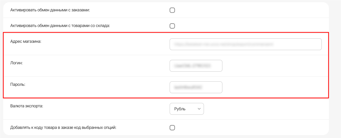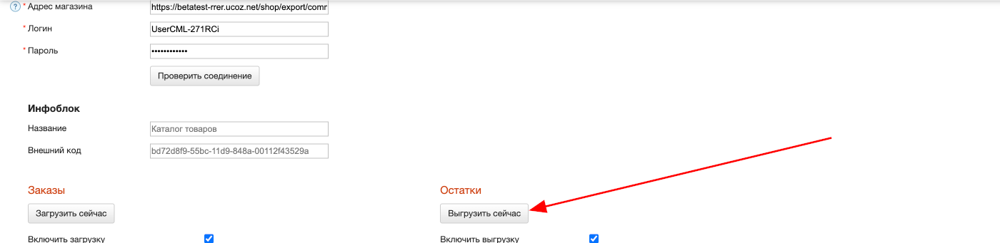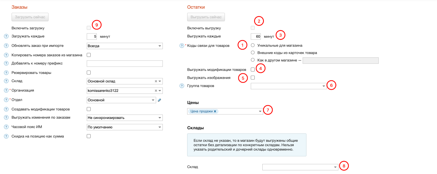 Перейдите к блоку с настройками передачи остатков и заказов.