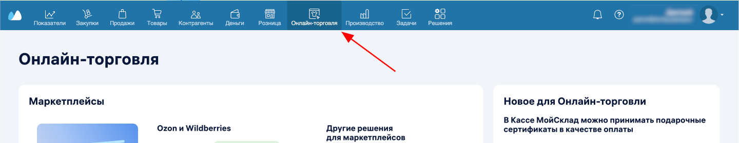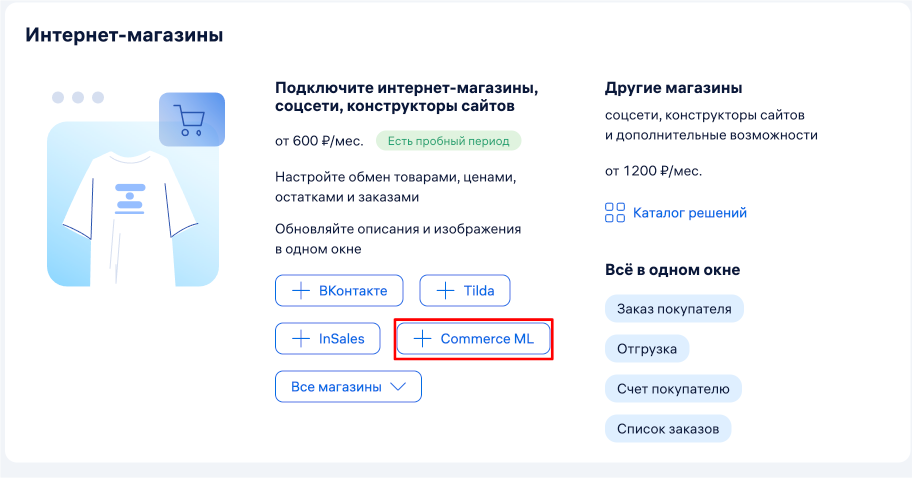 Долистайте до блока Интернет-магазины и выберите Commerce ML