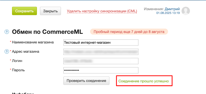 Нажмите кнопку Проверить соединение. Если сделали все верно, увидите такое сообщение.