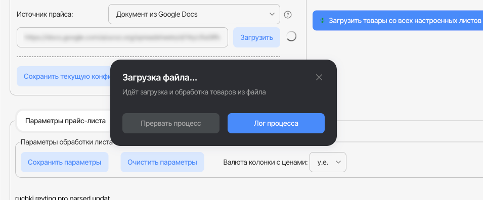 Ваша база с товарами подключена через Google Таблицы, обратите внимание, что теперь изменения в товарах нужно вносить через файл, изменения внесенные вручную не сохранятся при обновлении позиций из прайса.