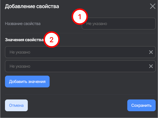 После, вы увидите экран, на котором нужно нажать Добавить свойство. Заполните: