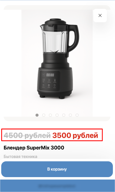 Старая цена - перечеркнутая цена, рядом с ценой продажи. Пример.